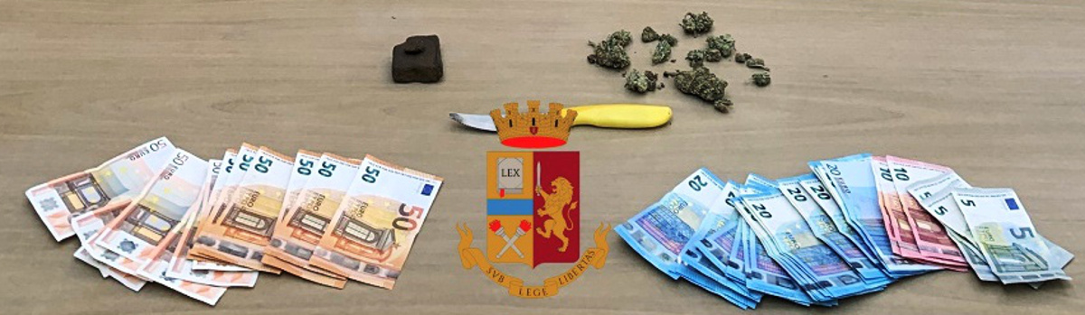 Gli agenti hanno trovato un pezzo di hashish del peso di circa 50 grammi, 11 grammi di marijuana e la somma di 1280 euro