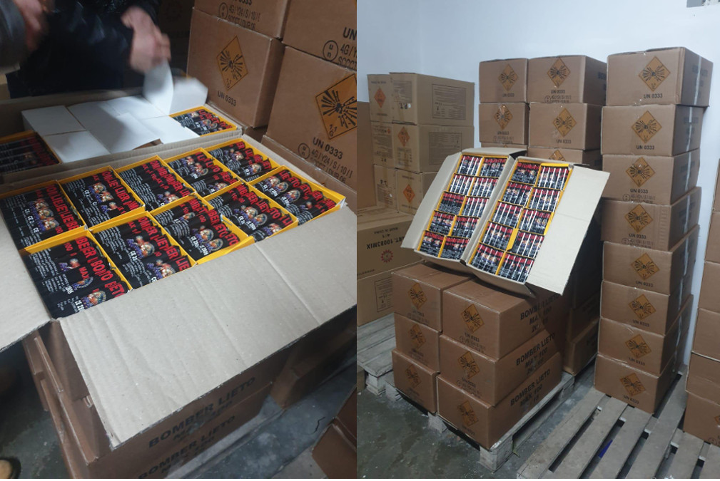 Gli agenti durante i controlli hanno rinvenuto 40 cartoni contenenti materiale esplodente, per un numero complessivo di 12000 pezzi