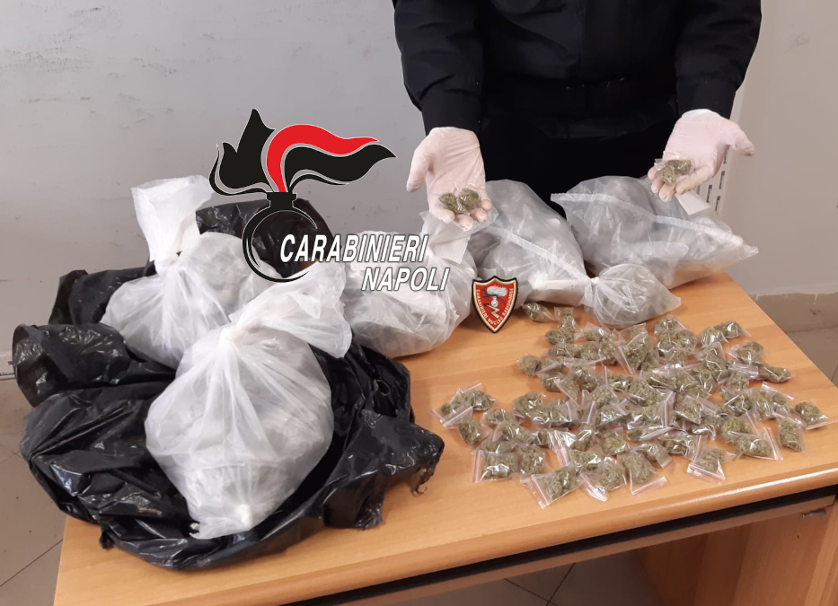 I carabinieri del nucleo radiomobile di Napoli, durante un servizio di controllo del territorio, hanno rinvenuto in un sacco nero depositato in un’aiuola in Via Marco Aurelio quasi un chilo di marijuana.