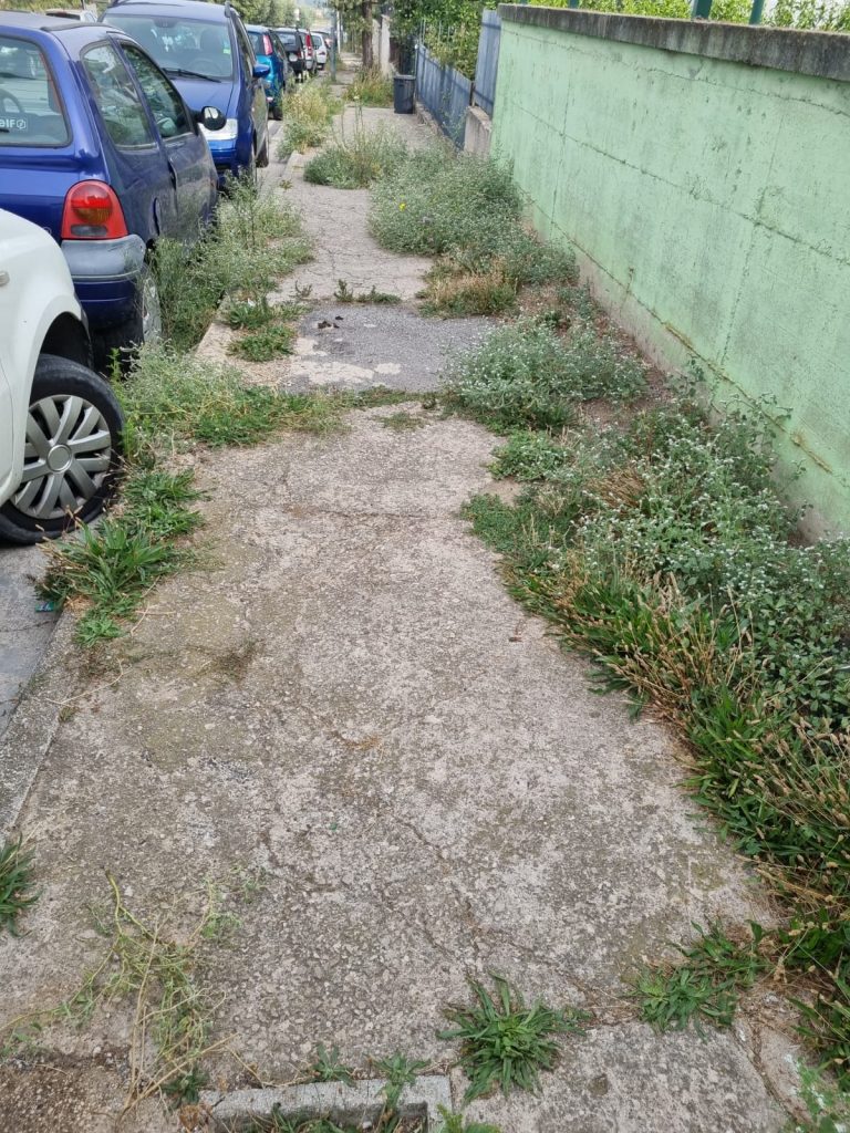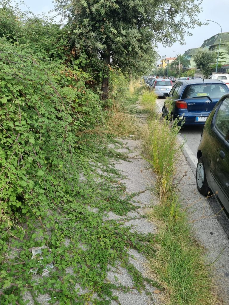 I marciapiedi ormai sono alla mercé dell’erbacce e dei rifiuti lasciati all’abbandono e all’incuranza da parte dei soliti incivili.