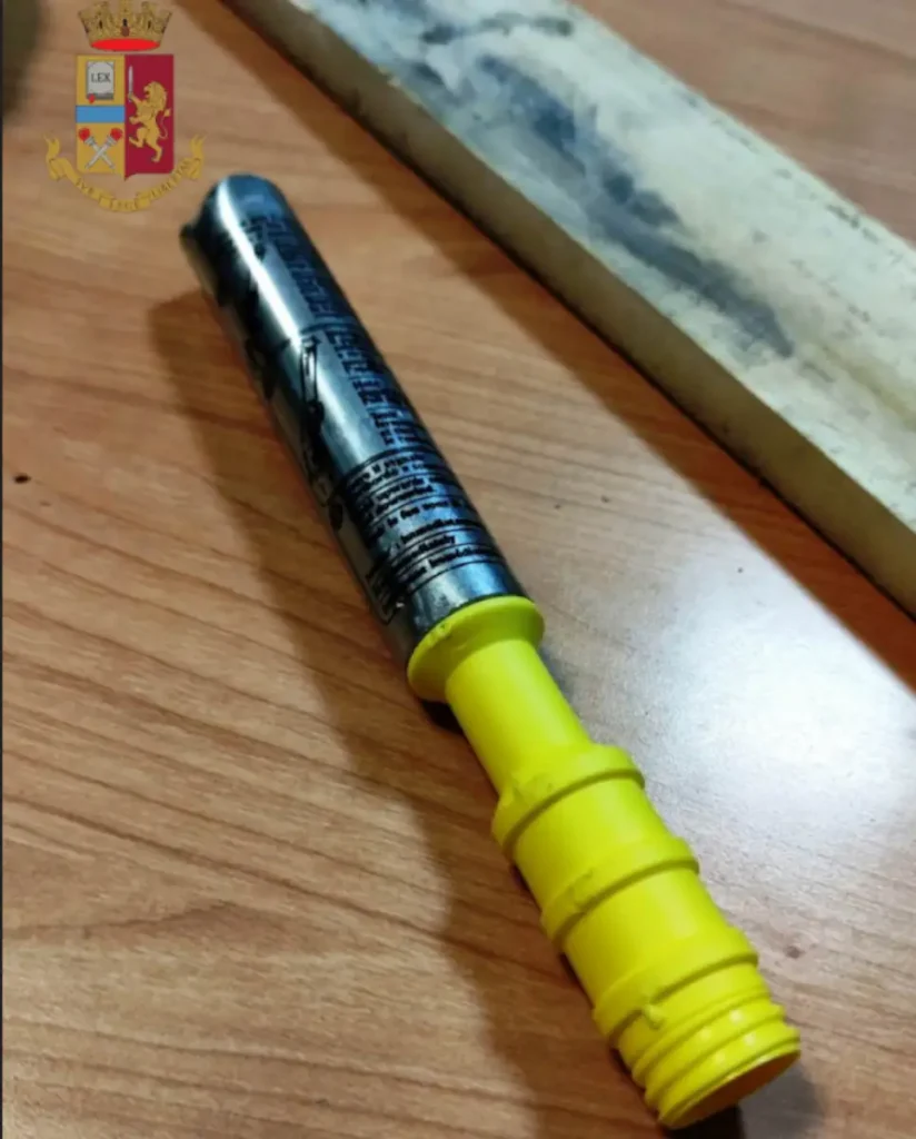Particolare di un fumogeno sequestrato dalla Polizia