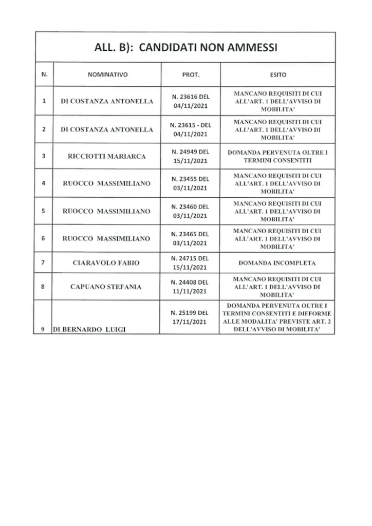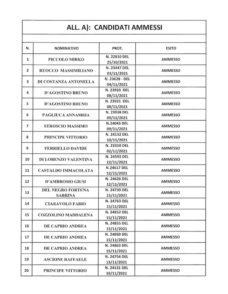 Credendo sia un caso – e non un “vestito su misura” – rileviamo però una certa “opacità” nella graduatoria con nomi che compaiono sia tra gli ammessi sia tra i non ammessi, non indicando per quali dei diversi profili lavoratori si sono candidati.