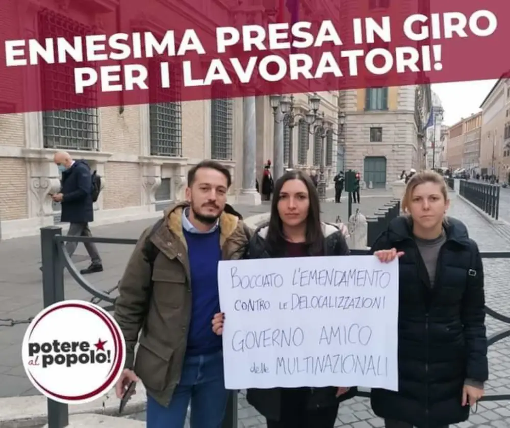 Matteo Mantero: “Va notato il silenzio di Confindustria sull’emendamento del Governo, che nei fatti accoglie tutte le sue richieste. Anche laddove l’emendamento governativo prevede un piano per la mitigazione degli effetti sociali della delocalizzazione, il non rispetto del piano comporta per l’impresa una multa ridicola di 3300 euro a lavoratore, ossia il doppio del normale ticket di licenziamento.Con questo voto centrodestra e centrosinistra si confermano essere dalla parte di Confindustria e non di quella dei lavoratori e delle lavoratrici e dei loro sindacati. Il 5 stelle è ormai pienamente assorbito dal sistema.Noi continueremo a lottare per l’approvazione del ddl anti-delocalizzazioni scritto dagli operai GKN e depositato da me al Senato e dalla collega Yana Ehm alla Camera. Su questo tema, che ormai è al centro del dibattito pubblico del paese, si può e si deve costruire un fronte di opposizione politica e sociale che ambisca a scalzare Confindustria e i suoi rappresentanti politici dal Governo e a impedire che il paese piombi nella desertificazione industriale verso cui ci stanno conducendo”.