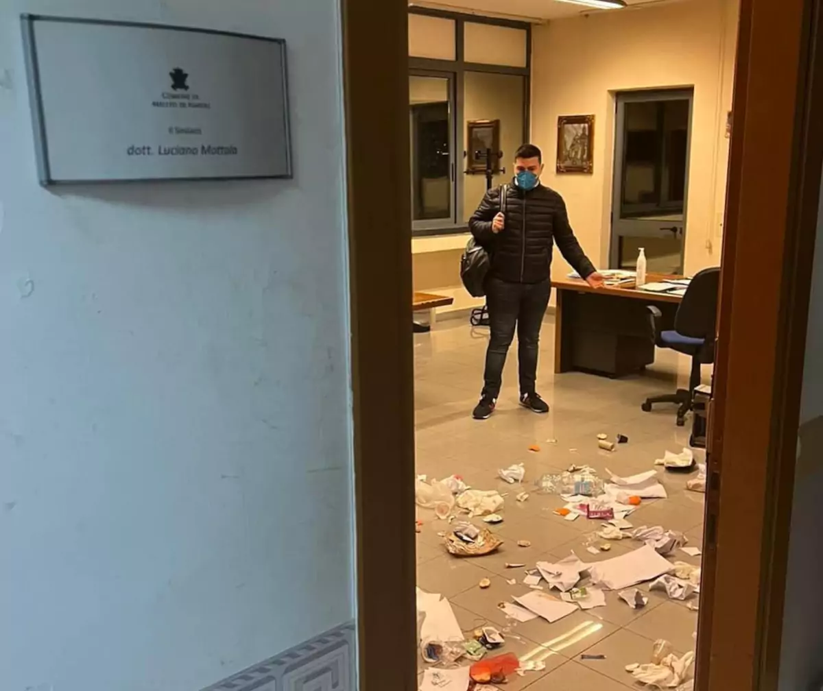 “Una situazione sconcertante quella in cui mi sono imbattuto pochi minuti fa. Dal piano terra all’ultimo dei piani del Municipio cumuli e cumuli di rifiuti. Resti di cibo, scatolame di vario genere e spazzatura di ogni tipo con atti dell’Ente strappati e gettati in ogni dove”. Ha poi proseguito descrivendo lo scenrio che gli si poneva evidentemente agli occhi.