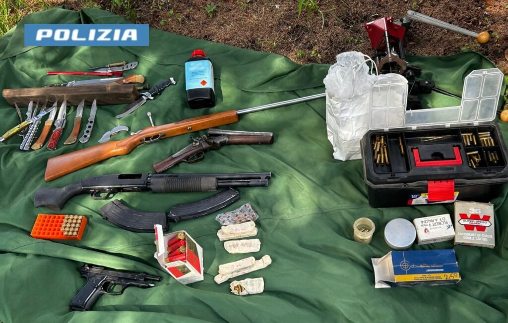 Gli operatori, avendo fondato motivo di ritenere che potessero esservi ulteriori elementi in ordine ai fatti per i quali si stava procedendo, hanno esteso il controllo al deposito dove hanno rinvenuto altri fucili, 2 caricatori per armi lunghe, una pistola replica, numeroso munizionamento di vario calibro, centinaia di bossoli e cariche per armi corte, un congegno utile alla fabbricazione di cartucce per fucili e mezzo chilo di polvere pirica.