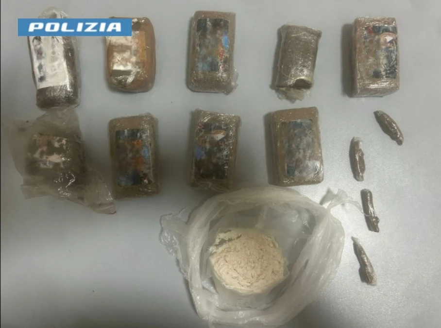 I poliziotti, tempestivamente intervenuti, hanno raggiunto e bloccato quest’ultima trovandola in possesso di un involucro di hashish del peso di circa 2,7 grammi e, avendo fondato motivo di ritenere che potessero esservi ulteriori elementi in ordine ai fatti per i quali si stava procedendo, hanno effettuato un controllo nell’abitazione della prevenuta dove hanno rinvenuto, in un cassetto della cucina, altri 4 involucri della stessa sostanza del peso di circa 11 grammi, una busta contenente 85 grammi circa di cocaina e 50 euro mentre, in una cassaforte, gli operatori hanno rinvenuto 9 panetti di hashish del peso di circa 800 grammi.