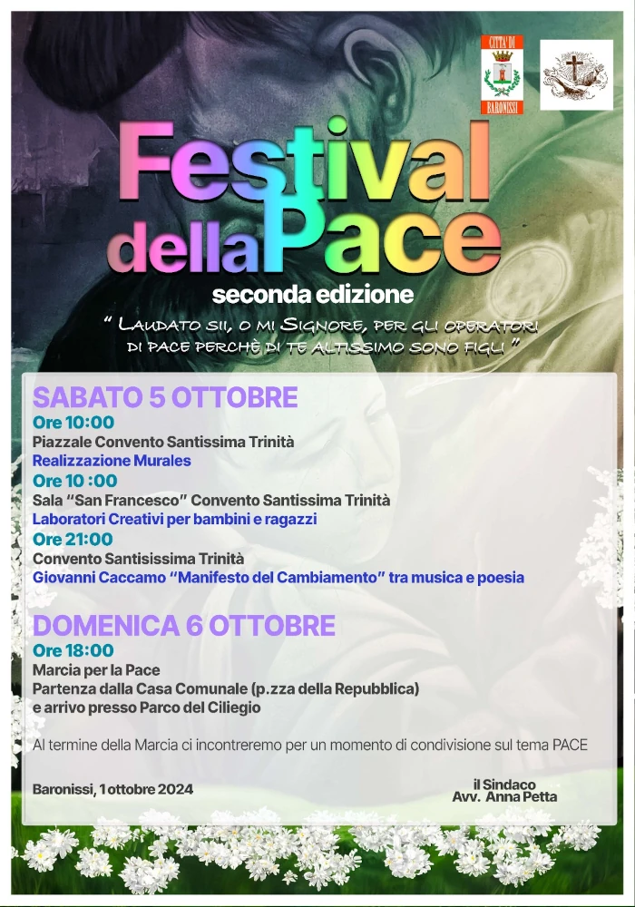 “Siamo orgogliosi di ospitare un artista sensibile e attento alle dinamiche giovanili come Giovanni Caccamo – sottolinea il Sindaco Anna Petta – Abbiamo pensato subito a lui per il Festival della Pace, perché con la sua musica e i suoi testi, riesce ad interpretare la visione della grande mobilitazione pacifista, all’insegna del dialogo, dell’incontro, per una rivoluzione culturale con un impatto positivo sul futuro. Giovanni è un artista poliedrico, cantautore ma anche intellettuale ispirato.
