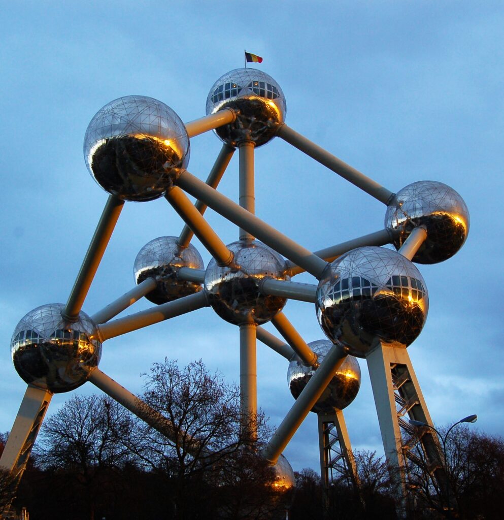 Giganti, davanti al “Manneken Pis”, la scultura, di appena 50 centimetri, che raffigura un bambino in piedi nell’atto di fare pipì (non è certo se rappresenta un atto di sfregio o per intervento tempestivo rispetto ad un incendio); microscopici, al cospetto dell’”Atomium”, un ingrandimento colossale di un atomo di ferro, alto oltre 100 metri, con nove sfere collegate tra loro da tubi, visitabile persino al suo interno.