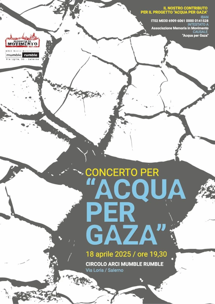 “Acqua per Gaza”: un concerto di solidarietà per la popolazione in difficoltà