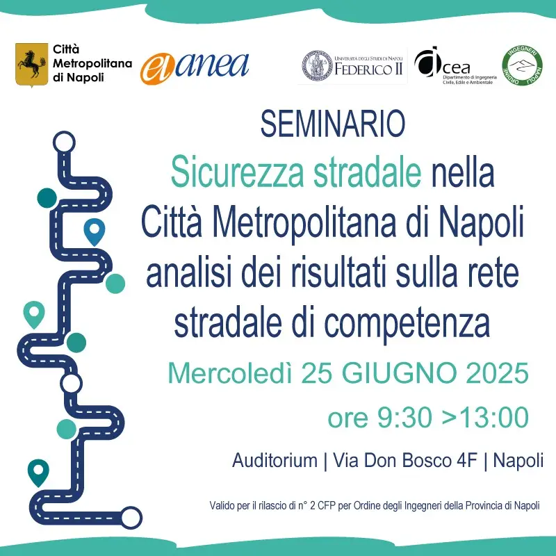 Sicurezza stradale, il 25 giugno 2025 un seminario organizzato dalla Città Metropolitana di Napoli