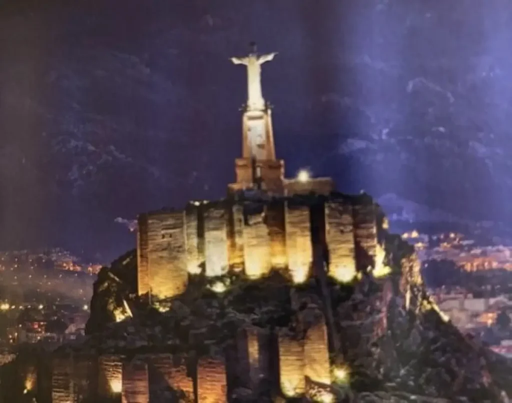 Il Castello di Monteagudo, che sovrasta le terre coltivate alle porte della città, riassume l’essenza di un’intera regione; da iniziale fortezza difensiva, sorta a 150 metri di altezza su un crocevia di fondamentali vie di comunicazione, divenuta in seguito anche granaio, cisterna, prigione, ora è il piedistallo della monumentale statua del “Cristo” che, con le sue braccia spalancate, consegna al mondo un prezioso, duplice messaggio: protezione del territorio e ospitalità allo straniero.