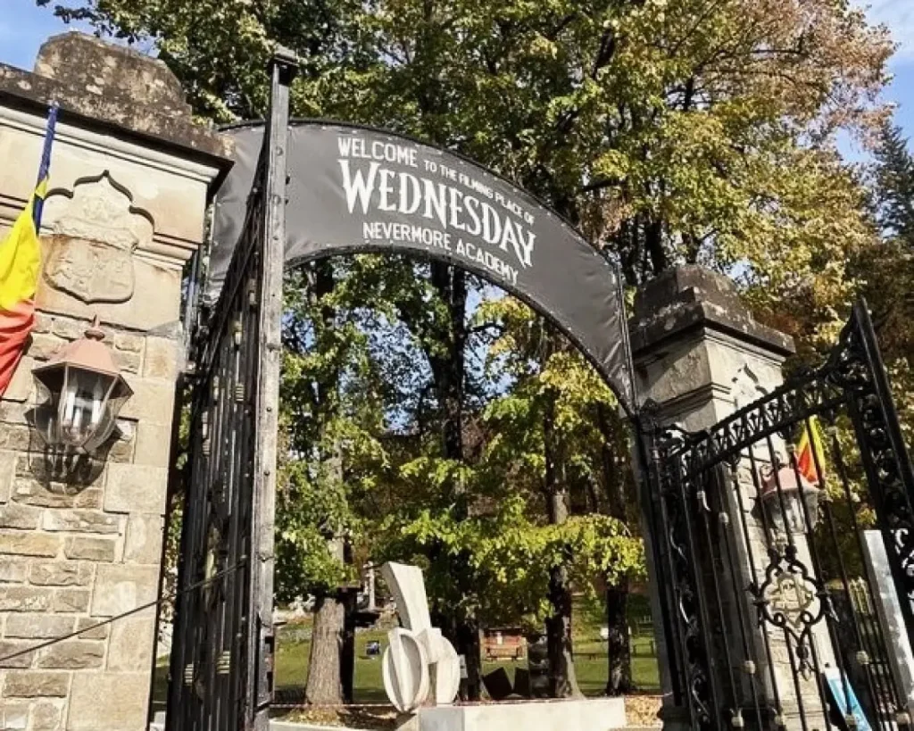 La tranquilla Bușteni, a metà strada tra Ploiesti e Brașov, a circa 150 chilometri dalla capitale rumena, è diventata la città che ha ospitato troupe e cast per le riprese delle scene ambientate alla “Nevermore Academy”, la scuola che la protagonista è, inizialmente, costretta a frequentare. Se la trama è di completa fantasia, la location è reale. Con il suo splendido parco ( che comprende una chiesa di legno una grotta e diverse fontane), il “Castelul Cantacuzino” dallo stile neogotico, appartenuto al principe e due volte primo ministro di Romania, esiste davvero ed è sicuramente il complesso più iconico ( ed eccessivo!) di Bușteni.