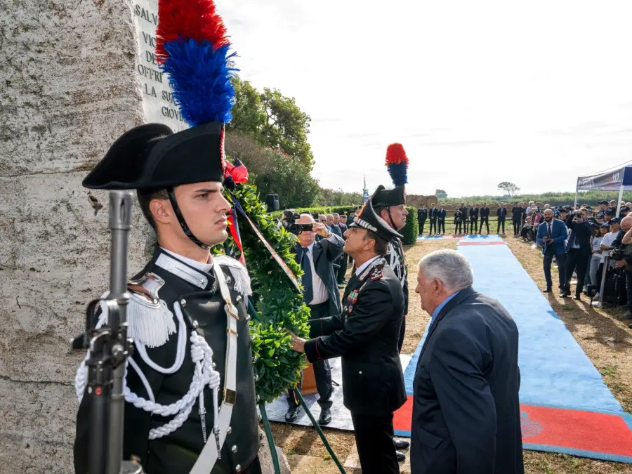 Il Comandante Generale, accompagnato dal Prof. D’Acquisto, ha deposto una corona d’alloro al monumento dedicato al Vicebrigadiere, in segno di omaggio al coraggio e alla memoria di tutti i caduti. La stele è stata quindi benedetta dal Cappellano Militare della Scuola Ufficiali Carabinieri, Don Domenico Vendemmiati, ricordando il gesto eroico di D’Acquisto, che offrì la propria vita per salvare ventidue ostaggi innocenti, trasformando un dramma in un atto eterno di eroismo e di amore per la Patria.
