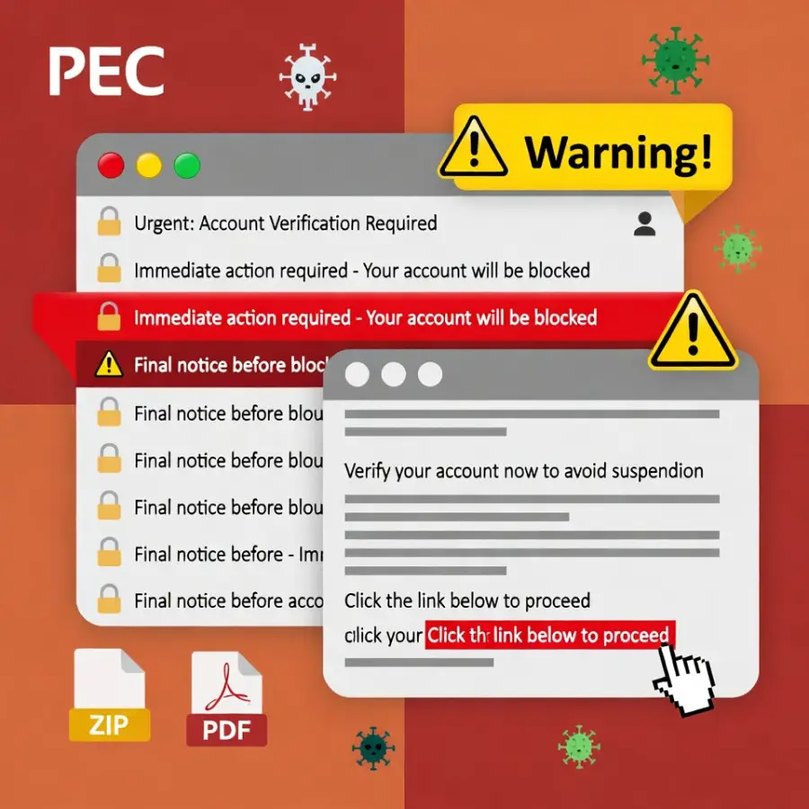È in corso una campagna di phishing tramite posta elettronica certificata (PEC): i truffatori inviano falsi avvisi urgenti su fatture scadute o anomalie amministrative, fingendosi enti pubblici o fornitori di servizi.