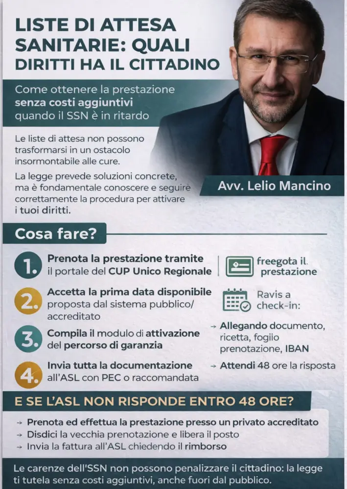 Ciò che spesso non viene spiegato con chiarezza è che la legge tutela il cittadino e prevede una procedura precisa per ottenere comunque la prestazione, anche presso strutture private, senza dover sostenere costi aggiuntivi.