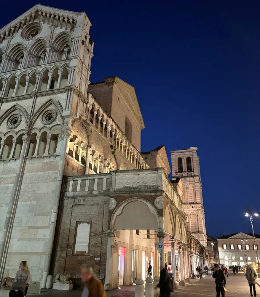 In questa città, uno solo dei cliché da racconto non è possibile: “C’era una volta”. Qui, le volte sono tante e ricoprono ancora i magazzini nella strada che, durante il medioevo, era destinata alla compravendita di merci e di “corpi”; oggi, invece è uno dei passaggi più romantici, spesso percorsa dagli innamorati che intrecciandosi in un abbraccio da “coppia”, il tipico pane ferrarese, svaniscono tra misteriosi veli di nebbia.