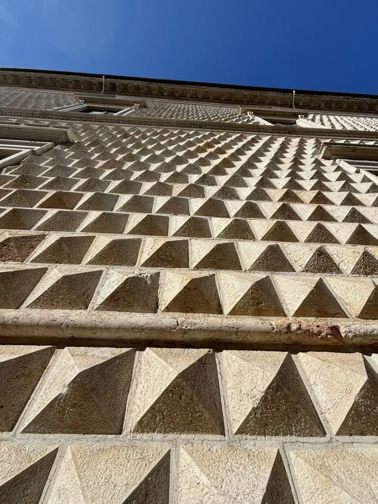 Proprio la sensazione che si prova in uno degli edifici più belli della città. Preziosi, i capolavori d’arte conservati o ospitati per mostre nelle sue sale; ipnotici, i tagli delle oltre 8000 bugne sulle pareti esterne, in grado di giocare con luce e ombre. E’ Palazzo dei Diamanti che risalta per originalità, al cospetto della diffusa monocromia del rosso mattone, tipica del cotto ferrarese.