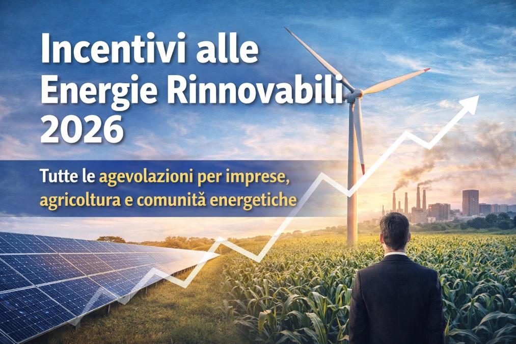 Guida completa agli incentivi per le energie rinnovabili nel 2026: Decreti FER, Conto Termico 3.0, Comunità Energetiche, bonus fotovoltaico e bandi per imprese e agricoltura. Analisi normativa e opportunità di investimento.