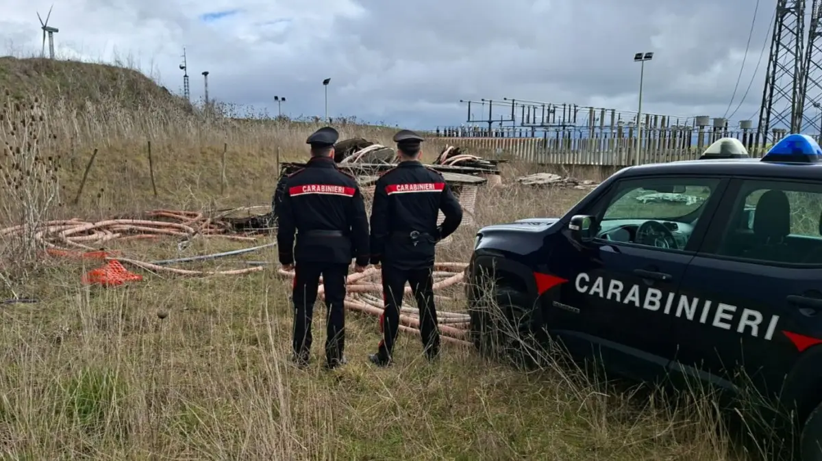 L’attività investigativa, avviata tempestivamente dai militari, ha permesso di risalire all’autore grazie alla visione e all’analisi dei filmati di videosorveglianza comunali. Le immagini hanno documentato chiaramente il momento in cui l’uomo, a bordo della propria autovettura, ha raggiunto il deposito di bobine in legno adiacente la sottostazione elettrica e dopo aver asportato un cavo di alluminio rivestito in gomma, ha dato fuoco al materiale presente.