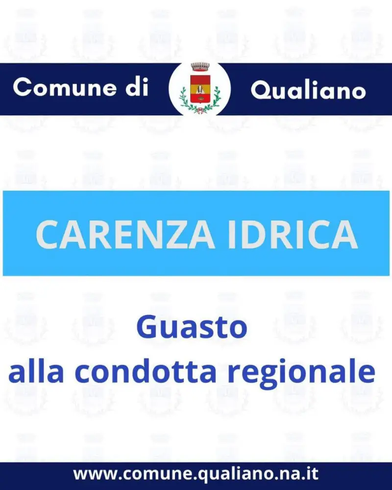 “A causa della rottura di una condotta regionale nel territorio di Villaricca si stanno verificando disservizi idrici in diverse zone di Qualiano. In alcune zone l’acqua è assente, in altre si registra la riduzione della pressione. Gli operai sono già a lavoro. Il guasto riguarda una tubazione di competenza regionale. Seguiranno aggiornamenti ufficiali non appena disponibili.”