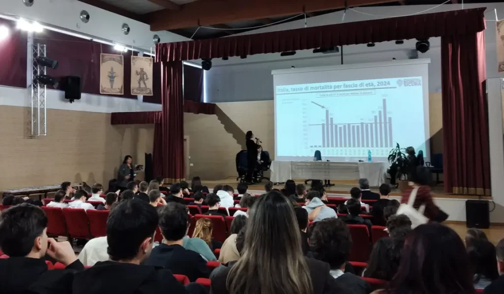 Nell’auditorium “Luigi ed Enrico Amatore”, rispettivamente marito e figlio della dirigente scolastica tragicamente morti in un incidente di volo, i ragazzi ascoltano anche l’intervento di Filomena Mauriello e Francesco Galante, docenti dell’Università degli Studi di Napoli Federico II – Dipartimento di Ingegneria Civile, Edile e Ambientale, che snocciolano numeri inesorabili: gli incidenti stradali restano la prima causa di morte nei giovani tra 15 e 29 anni.