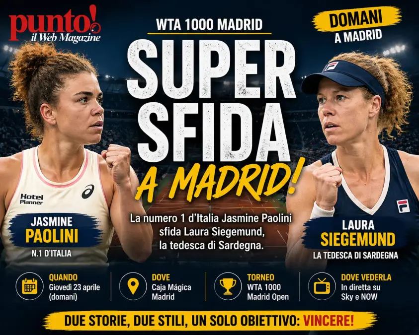 Sintesi: Jasmine Paolini affronta Laura Siegemund nel secondo turno del Madrid Open 2026. Il match si gioca tra il 23 e il 24 aprile, con orario da definire nel programma ufficiale giornaliero e diretta su Sky Sport.