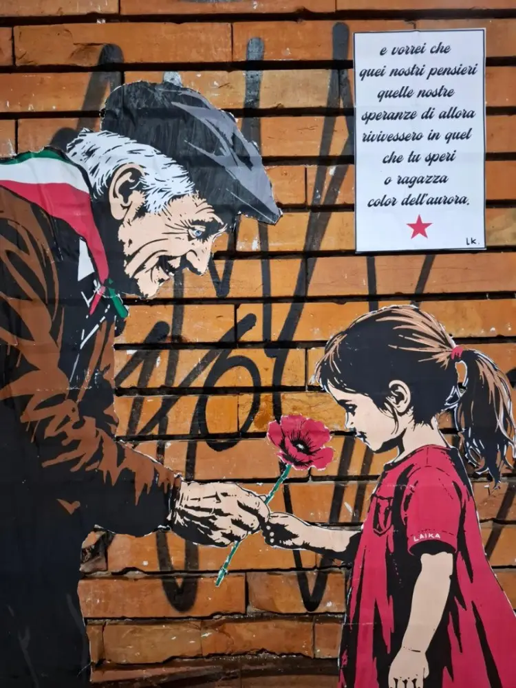 La street artist Laika celebra il 25 Aprile con l’opera “Senza memoria non c’è futuro”, apparsa alla Garbatella tra memoria della Resistenza e passaggio di testimone alle nuove generazioni.