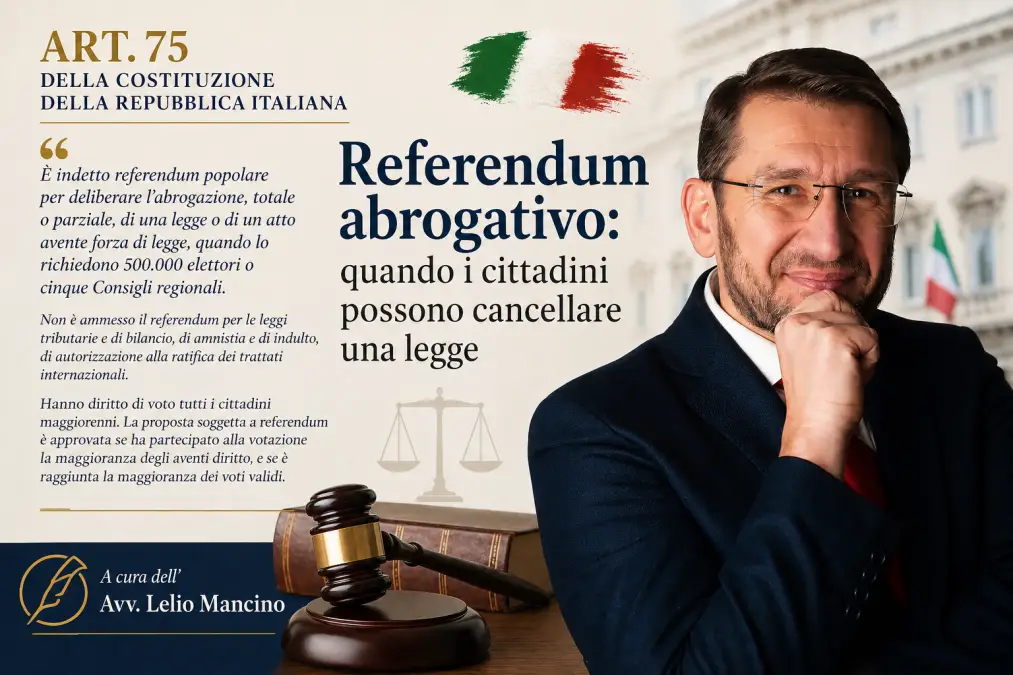 In una democrazia matura, il potere non si esaurisce nelle istituzioni rappresentative, ma trova il suo equilibrio nella partecipazione attiva dei cittadini. È in questa prospettiva che si inserisce il referendum abrogativo, disciplinato dall’articolo 75 della Costituzione della Repubblica Italiana: uno strumento di democrazia diretta che consente al popolo di incidere concretamente sull’ordinamento giuridico.