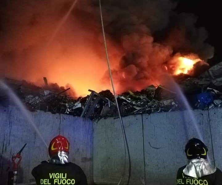 Sul posto Polizia e Vigili del Fuoco. All’interno del piazzale rifiuti ferrosi e speciali. In corso i rilievi dei tecnici per scoprire le cause dell’incendio Incendio...
