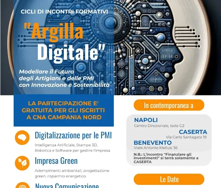 Argilla digitale: previsti incontri a Napoli, Caserta e Benevento su innovazione, finanziamenti a fondo perduto e strategie green per accompagnare le imprese artigiane nella transizione ecologica ...