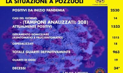 Sindaco di Pozzuoli Vincenzo Figliolia: “I contagi sono in calo. Non per questo dobbiamo però abbassare la guardia” “Questi sono i dati di oggi, comunicati dall’ASL Napoli...