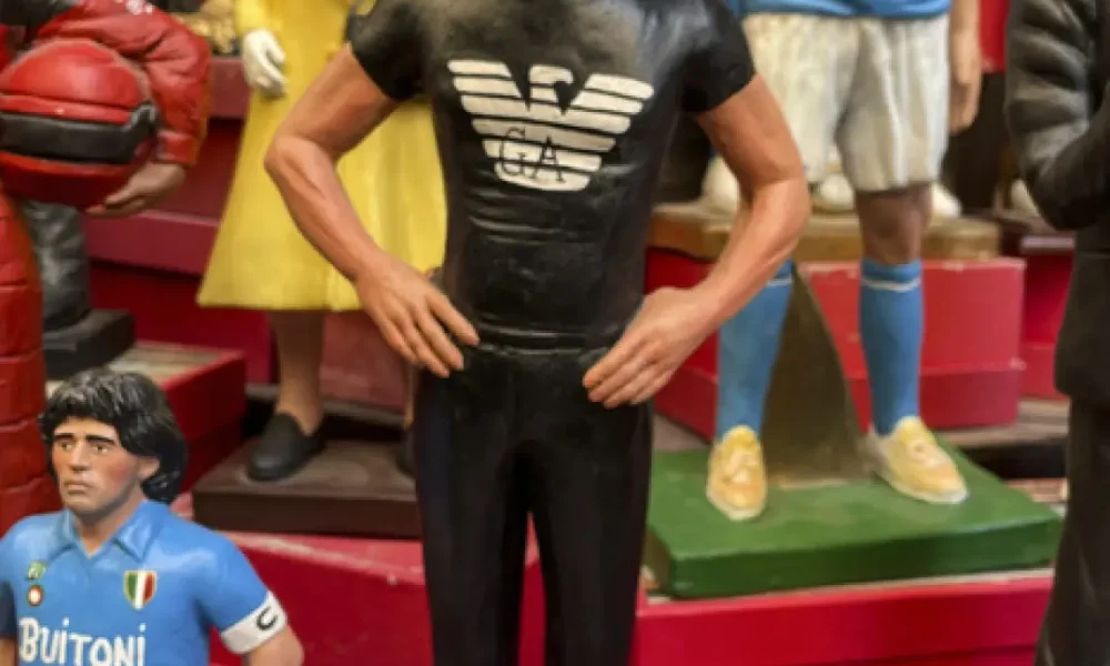 Una statuina in terracotta con t-shirt e pantaloni neri per lo stilista, esposta a San Gregorio Armeno con un biglietto: “Ciao Re Giorgio” NAPOLI, 6 settembre...