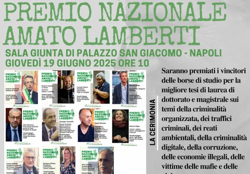 Premio Nazionale Amato Lamberti. Saranno presenti il sindaco di Napoli, Gaetano Manfredi, il professore Nando Dalla Chiesa, i giornalisti Gigi Di Fiore e Marilena Natale. Premio...