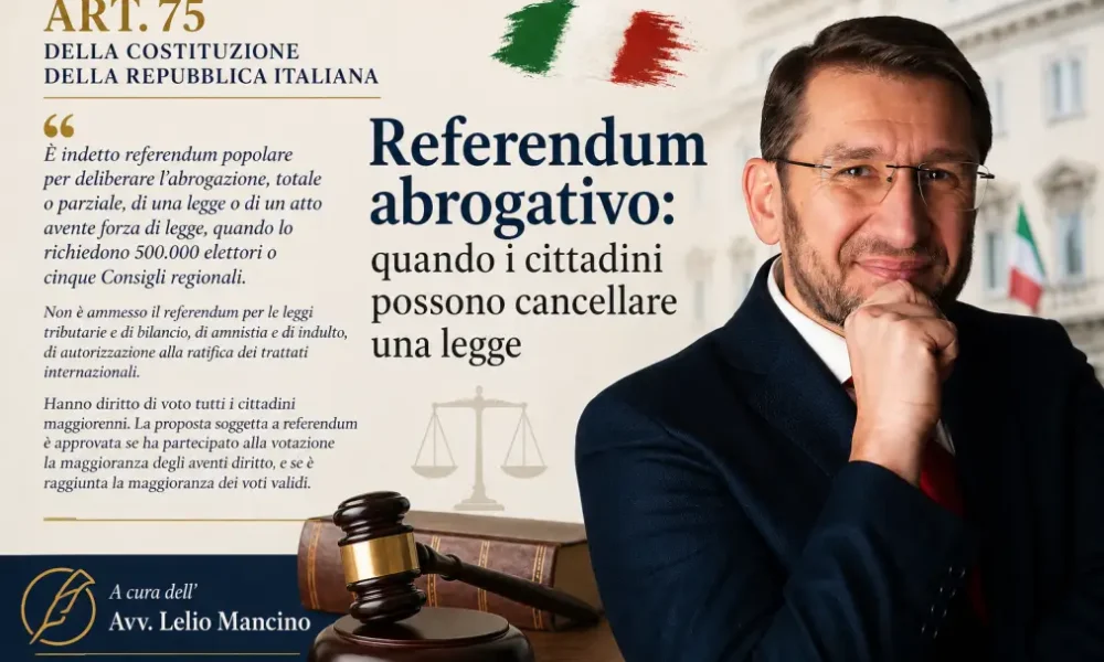 Referendum abrogativo, partecipazione popolare e responsabilità civica: il valore della democrazia diretta secondo la Costituzione italiana In una democrazia matura, il potere non si esaurisce nelle...