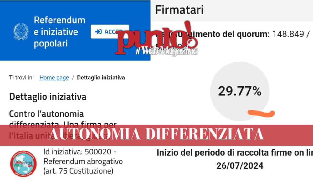 Autonomia differenziata: procede speditamente la raccolta di firme. In poco più di un giorno raccolto il 29.77% del quorum necessario Procede speditamente la raccolta delle firme...
