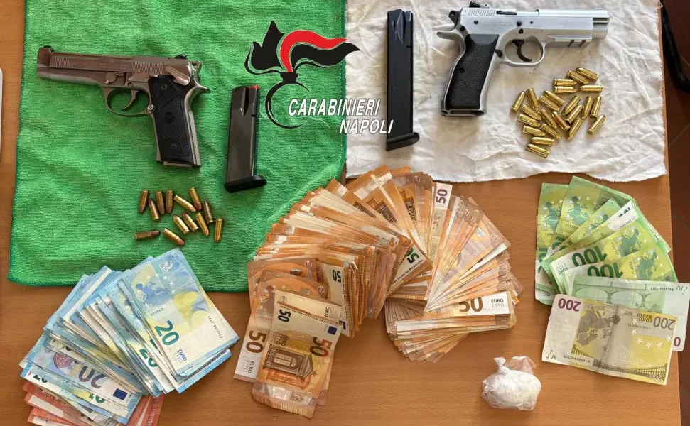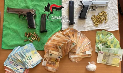 Durante la perquisizione rinvenuti 15 grammi di cocaina, oltre 11mila euro in contanti e due pistole con 36 proiettili nascosti in uno scooter rubato. I carabinieri...